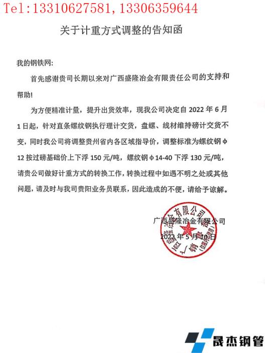 免責聲明:本網站(山東聊城晟杰無縫鋼管廠m.cuirutang.cn)刊載的“廣西盛隆冶金有限公司關于對貴州區域計重方式調整的告知函”等均源于網絡,版權歸原作者所有,且僅代表原作者觀點,本文所載信息僅供參考。轉載僅為學習與交流之目的,如無意中侵犯您的合法權益,請及時聯系刪除。本網站刊登此篇文章并不意味著本站贊同其觀點或證實其內容的真實性,我們不對其科學性、嚴肅性等作任何形式的保證。如果侵犯了您的版權,請盡快聯系我們予以撤銷,謝謝合作!