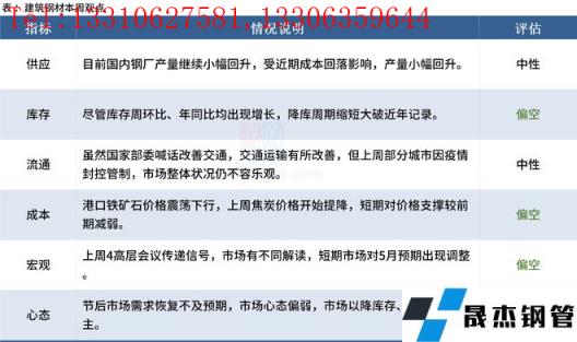 總體來看,市場受到了多重因素?cái)_動,預(yù)期出現(xiàn)調(diào)整。此外,各地疫情反復(fù)發(fā)生對市場需求產(chǎn)生持續(xù)性影響,致使各地停工和復(fù)工交替發(fā)生,需求表現(xiàn)較差,市場缺少有效支撐。本周,市場博弈加強(qiáng),在新的利好消息或者供需調(diào)整完成前,鋼價(jià)將延續(xù)承壓下行趨勢。