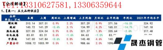 供應方面,本周五大厚壁無縫鋼管品種供應增至1008.7萬噸,增量4.7萬噸,增幅0.5%,其中建材環比增量2.1萬噸,增幅0.5%;板材環比增量2.7萬噸,增幅0.5%。