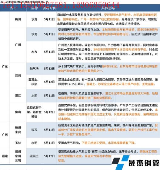 今年以來最強降雨過程已經(jīng)在華南拉開帷幕。據(jù)氣象水文部門預測,5月9日至13日江南南部和華南地區(qū)將迎來入汛以來最強降雨過程,本輪強降雨覆蓋范圍廣、持續(xù)時間長、累計雨量大、局地雨勢猛,廣東、廣西、福建、重慶、四川、貴州、云南省(自治區(qū)、直轄市)等多地啟動防汛Ⅳ級應急響應,部分強降雨天氣影響下多地施工進度受損,運輸和終端施工進度受限,建筑材料市場行情弱勢運行。