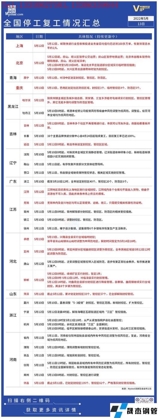 截至5月13日,據(jù)不完全統(tǒng)計,共有13個省份發(fā)布了停工復(fù)工最新信息。江陰、承德繼續(xù)施行全域封控。北京多區(qū)實施管控措施。菏澤全部解除封控管控。具體情況如下: