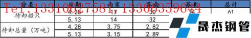此次調(diào)研選取了南京、蘇州、無錫、常州、南通、徐州、揚(yáng)州、鹽城八個城市,以建筑厚壁無縫鋼管為主要庫存的20家倉庫。通過匯總了解,當(dāng)前樣本倉庫碼頭累計待卸船只總計53只,待卸總量達(dá)6.69萬噸。