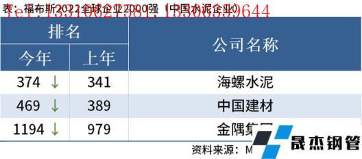 免責聲明:本網站(山東聊城晟杰無縫鋼管廠m.cuirutang.cn)刊載的“中國3家水泥企業上榜福布斯2022全球企業2000強”等均源于網絡,版權歸原作者所有,且僅代表原作者觀點,本文所載信息僅供參考。轉載僅為學習與交流之目的,如無意中侵犯您的合法權益,請及時聯系刪除。本網站刊登此篇文章并不意味著本站贊同其觀點或證實其內容的真實性,我們不對其科學性、嚴肅性等作任何形式的保證。如果侵犯了您的版權,請盡快聯系我們予以撤銷,謝謝合作!