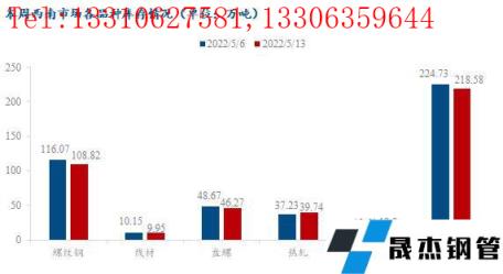 據調研,截止2022年5月13日,西南市場厚壁無縫鋼管累計社會庫存為218.58萬噸,環比減少6.14萬噸,降幅2.73%。分省份來看,本周四川市場厚壁無縫鋼管庫存為83.59萬噸,環比增加1.08萬噸,漲幅1.31%;重慶市場厚壁無縫鋼管庫存為69.55萬噸,環比減少1.15萬噸,降幅1.63%;貴州市場厚壁無縫鋼管庫存為27.03萬噸,環比減少4.57萬噸,降幅14.46%;云南市場厚壁無縫鋼管庫存為38.41萬噸,環比減少1.5萬噸,降幅3.76%。