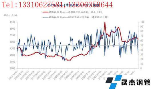 2022年5月13日鋼市情緒指數整體繼續回落,多數品種情緒指數回落至榮枯線下方,表明本周市場情緒繼續降溫,整體信心不足。具體來看,本周國內厚壁無縫鋼管市場波動明顯,價格呈明顯下跌態勢,周初受黑色系期貨盤面下挫影響,市場悲觀拋售情緒蔓延,現貨價格出現明顯下跌,雖后半周盤面低位有所反彈,但本周南方大降雨以及各地疫情管控雙重限制下,各地需求持續萎靡,現貨價格維持弱勢表現。從宏觀面來看,雖近期利好政策密集出臺,但周五公布的社融數據遇冷,也表明當前市場投資情緒較弱。對于下周而言,短期厚壁無縫鋼管基本面繼續維持供需雙弱局面,市場投機情緒較差,預計下周國內鋼市或延續弱勢震蕩運行。