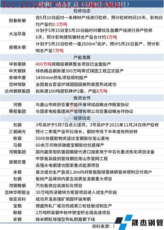 據不完全統計,本周(5月9日-5月13日)有3家無縫厚壁鋼管廠家發布檢修計劃,具體如下:
