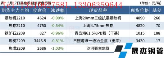 免責聲明:本網站(山東聊城晟杰無縫鋼管廠m.cuirutang.cn)刊載的“2022年05月18日早讀:黑色期貨夜盤普跌,焦炭開啟第三輪提降”等均源于網絡,版權歸原作者所有,且僅代表原作者觀點,本文所載信息僅供參考。轉載僅為學習與交流之目的,如無意中侵犯您的合法權益,請及時聯系刪除。本網站刊登此篇文章并不意味著本站贊同其觀點或證實其內容的真實性,我們不對其科學性、嚴肅性等作任何形式的保證。如果侵犯了您的版權,請盡快聯系我們予以撤銷,謝謝合作!