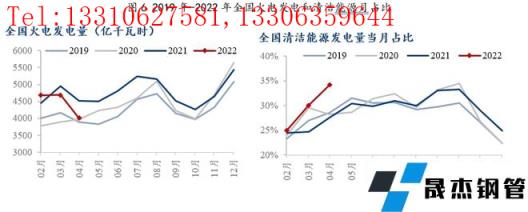 華東地區是火電發電的主要區域,受疫情影響較重,用電需求回落直接影響火發電量減少,帶動火電發電同比大幅回落11.8%。隨著水電發電逐步回升,以及太陽能發電增加,4月清潔能源發電占比34.1%,接近歷史高位,因此,用電量需求的減少直接影響發電量。