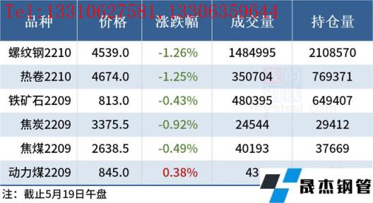 免責聲明:本網站(山東聊城晟杰無縫鋼管廠m.cuirutang.cn)刊載的“2022年05月19日午報:鋼價全線下跌,黑色期貨低開高走”等均源于網絡,版權歸原作者所有,且僅代表原作者觀點,本文所載信息僅供參考。轉載僅為學習與交流之目的,如無意中侵犯您的合法權益,請及時聯系刪除。本網站刊登此篇文章并不意味著本站贊同其觀點或證實其內容的真實性,我們不對其科學性、嚴肅性等作任何形式的保證。如果侵犯了您的版權,請盡快聯系我們予以撤銷,謝謝合作!