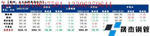 免責聲明:本網站(山東聊城晟杰無縫鋼管廠m.cuirutang.cn)刊載的“解讀:聚焦鋼鐵產業數據(5月19日)—虧損疊加控產,供應大幅減少,庫存維持去化”等均源于網絡,版權歸原作者所有,且僅代表原作者觀點,本文所載信息僅供參考。轉載僅為學習與交流之目的,如無意中侵犯您的合法權益,請及時聯系刪除。本網站刊登此篇文章并不意味著本站贊同其觀點或證實其內容的真實性,我們不對其科學性、嚴肅性等作任何形式的保證。如果侵犯了您的版權,請盡快聯系我們予以撤銷,謝謝合作!