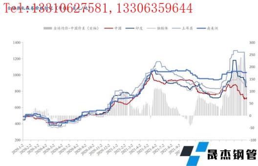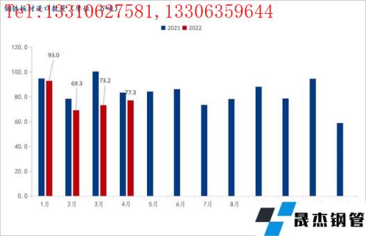 從價差的角度來看,受烏俄沖突導致的全球厚壁無縫鋼管供需錯配影響,海外市場熱卷價格在4月份觸及高點,全球市場除中國外熱卷平均價格已經超過1000美元/噸,海內外價差達到1700元/噸。在海外市場急需補庫以及大額價差的情況下,3-4月份大批量詢單開始蜂涌至中國各大無縫厚壁鋼管廠家及國貿商,大量4-6月船期出口訂單被簽訂,這從3-4月熱卷出口量可以得到印證。近期海外市場價格開始有所回落,海外市場補庫也基本完成,因此我國熱卷出口或將量或將在6月份觸及年內最高點,后逐漸回落。