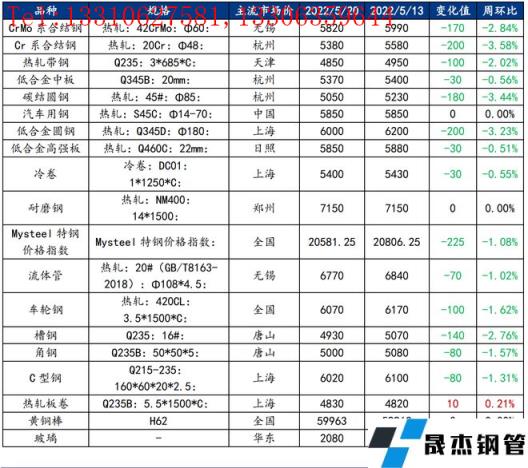截止2022年5月20日,各原材料當(dāng)日即時(shí)價(jià)格以及價(jià)格周環(huán)比情況如下:
