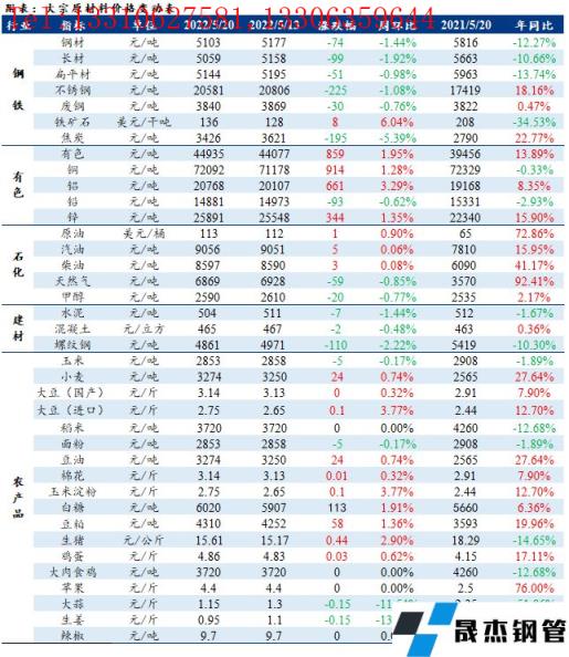 免責(zé)聲明:本網(wǎng)站(山東聊城晟杰無縫鋼管廠m.cuirutang.cn)刊載的“周報(bào):大宗工業(yè)原材料、能源及農(nóng)產(chǎn)品價(jià)格周報(bào)(5.16-5.20)”等均源于網(wǎng)絡(luò),版權(quán)歸原作者所有,且僅代表原作者觀點(diǎn),本文所載信息僅供參考。轉(zhuǎn)載僅為學(xué)習(xí)與交流之目的,如無意中侵犯您的合法權(quán)益,請及時(shí)聯(lián)系刪除。本網(wǎng)站刊登此篇文章并不意味著本站贊同其觀點(diǎn)或證實(shí)其內(nèi)容的真實(shí)性,我們不對其科學(xué)性、嚴(yán)肅性等作任何形式的保證。如果侵犯了您的版權(quán),請盡快聯(lián)系我們予以撤銷,謝謝合作!