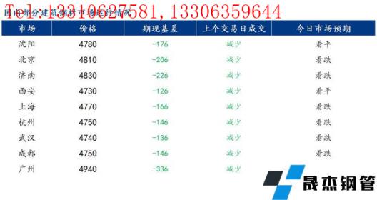 現(xiàn)貨市場動態(tài):23日,全國31個主要城市20mm三級抗震螺紋鋼均價4839元/噸,較上個交易日跌10元/噸;上海螺紋鋼美元計價指數(shù)收于729.78,跌0.08%。具體來看,昨日早盤期螺震蕩運行,部分地區(qū)市場報價小幅上漲,盤中期螺轉(zhuǎn)弱,成交轉(zhuǎn)弱,市場情緒較為悲觀,商家多以暗降出貨。午后期螺繼續(xù)走弱,現(xiàn)貨價格進一步走低,全天成交表現(xiàn)清淡。預(yù)計今日國內(nèi)建筑厚壁無縫鋼管市場偏弱運行。