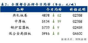 今日全國部分品種均價下跌,整體跌幅為6~62元/噸