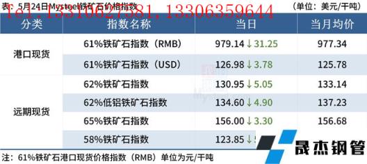 ◎ 5月24日,全國主港鐵礦石成交54.30萬噸,環(huán)比增1.5%;237家主流貿(mào)易商建材成交13.09萬噸,環(huán)比減13.2%。