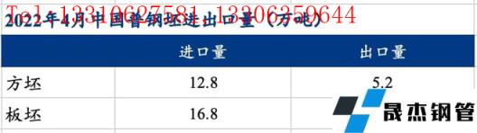 2022年4月,我國鋼坯出口16.9萬噸,2022年1-4月鋼坯出口17.2萬噸。4月鋼坯出口環(huán)比大幅增長17729.3%,同比大幅增長12426.6%,創(chuàng)近十三年月度出口量新高。