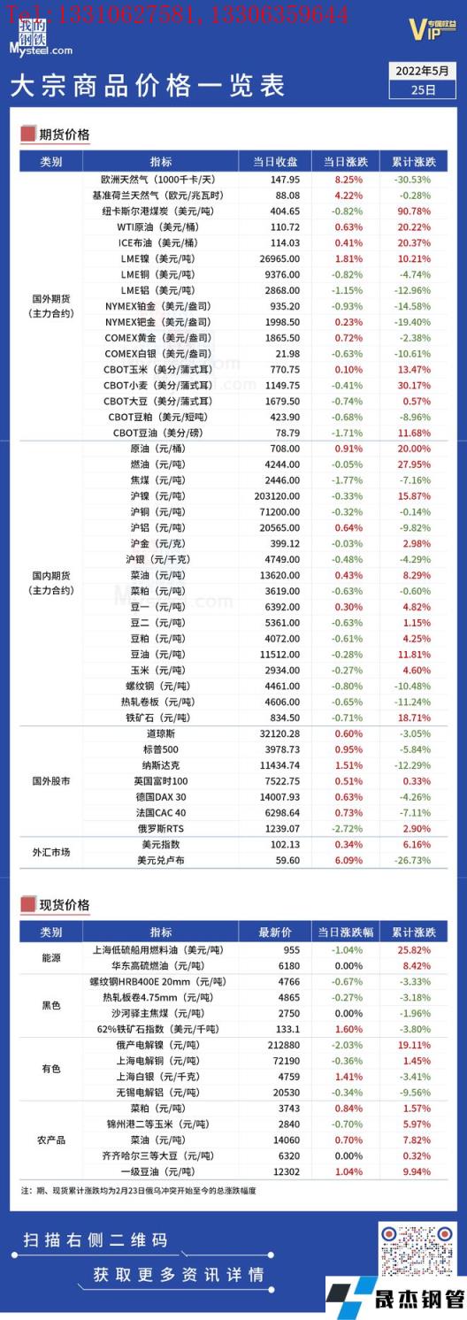 免責聲明:本網站(山東聊城晟杰無縫鋼管廠m.cuirutang.cn)刊載的“俄烏局勢丨大宗商品價格一覽表(5月25日)”等均源于網絡,版權歸原作者所有,且僅代表原作者觀點,本文所載信息僅供參考。轉載僅為學習與交流之目的,如無意中侵犯您的合法權益,請及時聯系刪除。本網站刊登此篇文章并不意味著本站贊同其觀點或證實其內容的真實性,我們不對其科學性、嚴肅性等作任何形式的保證。如果侵犯了您的版權,請盡快聯系我們予以撤銷,謝謝合作!