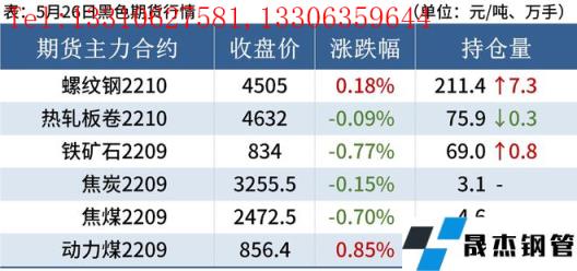 建筑厚壁無縫鋼管:5月26日,全國31個主要城市20mm三級抗震螺紋鋼均價4744元/噸,較上個交易日下跌22元/噸。受現貨持續回落,本周無縫厚壁鋼管廠家減產范圍擴大,螺紋鋼產量小幅下降,廠庫小幅上升,但社庫持續下降,表觀消費小幅回落。短期來看,盡管近期利好政策層出不窮,但政策落地執行仍需時日。目前市場情緒依然偏空,短期仍然需要進一步提振市場消費信心及投資信心。因此預計27日國內建筑厚壁無縫鋼管價格或將繼續窄幅趨弱調整為主。