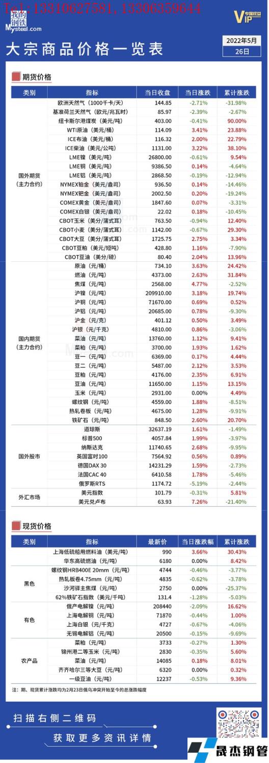 免責聲明:本網站(山東聊城晟杰無縫鋼管廠m.cuirutang.cn)刊載的“俄烏局勢丨大宗商品價格一覽表(5月26日)”等均源于網絡,版權歸原作者所有,且僅代表原作者觀點,本文所載信息僅供參考。轉載僅為學習與交流之目的,如無意中侵犯您的合法權益,請及時聯系刪除。本網站刊登此篇文章并不意味著本站贊同其觀點或證實其內容的真實性,我們不對其科學性、嚴肅性等作任何形式的保證。如果侵犯了您的版權,請盡快聯系我們予以撤銷,謝謝合作!