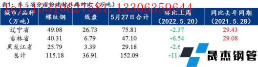 核心觀點:本周東三省建材社庫總量152.09萬噸,較上周減少11.60萬噸,去庫速度正常。本周吉林長春市場去庫加速,相比較上周4.5萬噸的去庫量本周庫存減少了6.0萬噸,主要原因是隨著疫情的逐漸好轉,對市場的影響愈加減少,且下游的開工率也逐漸上升,從日出貨量上也能看出來,本周長春日成交0.52萬噸較上周增加0.10萬噸。遼寧沈陽和大連市場由于各無縫厚壁鋼管廠家投放量的增加,去庫略有放緩,大連市場甚至還處于累庫的階段,主要近期鞍鋼、新撫鋼、通鋼、北臺和新澎輝等廠家的現貨陸續到貨。黑龍江哈爾濱市場則處于正常的去庫階段。具體來看降庫數據,本周遼寧省建材總庫存75.81噸,較上周減少2.37萬噸,吉林省內建材總庫存47.10萬噸,較上周減少6.54萬噸,黑龍江省建材總庫存29.18萬噸,較上周減少2.69萬噸。詳細數據如下: