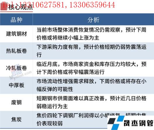 據(jù)調(diào)研,本周無縫厚壁鋼管廠家?guī)齑孢B續(xù)兩周小幅下降,厚壁無縫鋼管社會庫存降幅收窄,主要是短流程無縫厚壁鋼管廠家正加大減產(chǎn)力度,緩解高庫存壓力,而貿(mào)易商因終端需求疲弱,出貨量有所減弱。當(dāng)前處于“弱現(xiàn)實(shí)”與“強(qiáng)預(yù)期”的激烈碰撞階段,本周黑色期貨先抑后揚(yáng),呈現(xiàn)震蕩磨底態(tài)勢。厚壁無縫鋼管期貨和現(xiàn)貨市場反彈,主要是再度看好6月份需求回暖,若要實(shí)現(xiàn)一波持續(xù)上漲,關(guān)注“強(qiáng)預(yù)期”何時(shí)得到兌現(xiàn)。