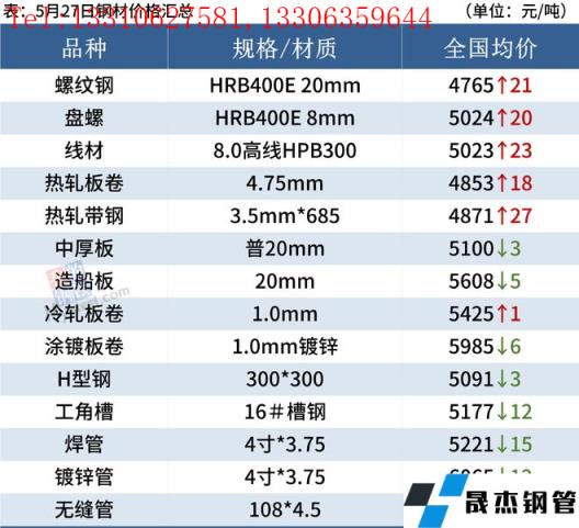 建筑厚壁無縫鋼管:5月27日,全國31個主要城市20mm三級抗震螺紋鋼均價(jià)4765元/噸,較上個交易日漲21元/噸。短期來看,受期螺大幅上漲,市場悲觀情緒有所修復(fù),出貨有所好轉(zhuǎn)。短期投資消費(fèi)信心不足導(dǎo)致市場供需處于雙弱的格局,當(dāng)前市場整體消費(fèi)恢復(fù)情況仍需觀察。因此預(yù)計(jì)下周國內(nèi)建筑厚壁無縫鋼管價(jià)格或?qū)⒗^續(xù)小幅上漲為主。