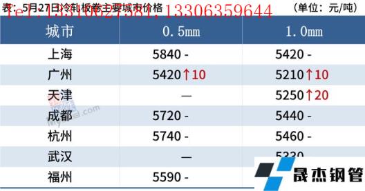 冷軋板卷:5月27日,全國24個主要城市1.0mm冷卷均價(jià)5425元/噸,較上個交易日上漲1元/噸。黑色系期貨盤面止跌反彈,市場信心稍有提振,釋放部分投機(jī)需求,多數(shù)商家以出貨回籠資金操作為主,成交稍有好轉(zhuǎn)。據(jù)商家反饋,當(dāng)前下游制造業(yè)都在緩慢復(fù)蘇狀態(tài),其接單一般,采購心態(tài)也較為謹(jǐn)慎,未見大規(guī)模補(bǔ)庫采購的跡象。就下周市場而言,臨近月底,考慮到市場商家資金和庫存壓力均較大,預(yù)計(jì)下周全國市場冷軋板卷價(jià)格或?qū)⒄鹗庍\(yùn)行。
