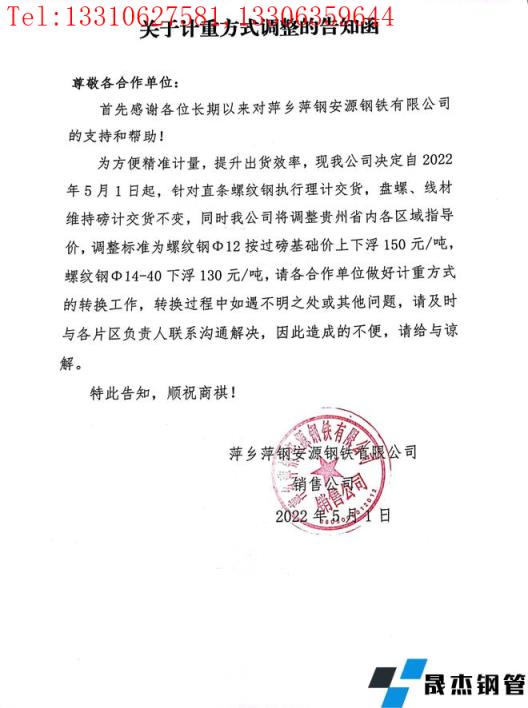 免責聲明:本網站(山東聊城晟杰無縫鋼管廠m.cuirutang.cn)刊載的“萍鄉萍鋼安源鋼鐵有限公司關于對貴州區域計重方式調整的告知函”等均源于網絡,版權歸原作者所有,且僅代表原作者觀點,本文所載信息僅供參考。轉載僅為學習與交流之目的,如無意中侵犯您的合法權益,請及時聯系刪除。本網站刊登此篇文章并不意味著本站贊同其觀點或證實其內容的真實性,我們不對其科學性、嚴肅性等作任何形式的保證。如果侵犯了您的版權,請盡快聯系我們予以撤銷,謝謝合作!