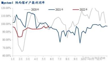 據本周動力煤礦山數據顯示,陜西地區樣本開工率為97.9%,周環比增加1.4%,產地煤礦正常生產,供應穩定,隨著疫情的緩解和工業企業開工率的提高、礦區裝車客戶有所增多,部分下游用戶開始采購,因保供政策持續發酵,大多礦區不敢貿然上調價格,煤價處于高位運行,多數煤礦庫存保持低位。