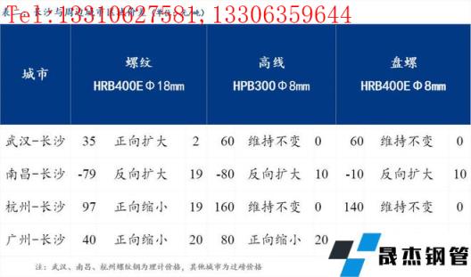 統一為理計單位后,武漢高于長沙35元/噸,南昌低于長沙79元/噸,杭州高于長沙97元/噸,廣州高于長沙40元/噸。