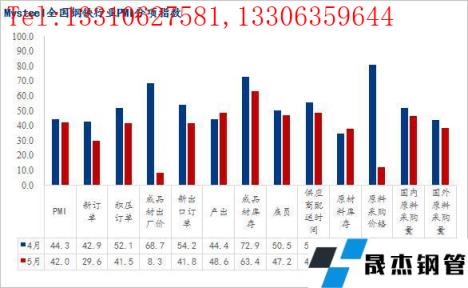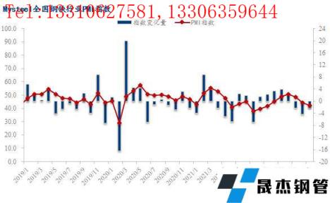 2022年5月份全國(guó)鋼鐵行業(yè)PMI為42.0%,環(huán)比回落2.3個(gè)百分點(diǎn),連續(xù)三個(gè)月低于榮枯線。分指標(biāo)來看,本月新訂單、新出口訂單、積壓訂單、出廠價(jià)格、原料采購(gòu)價(jià)指數(shù)均大幅回落,僅產(chǎn)出、原材料庫存指數(shù)小幅回升,但仍處于榮枯線下方,顯示了5月份國(guó)內(nèi)鋼鐵行業(yè)呈現(xiàn)供需兩弱的低迷態(tài)勢(shì)運(yùn)行。具體來看,5月份國(guó)內(nèi)疫情仍呈多點(diǎn)散發(fā)態(tài)勢(shì),繼續(xù)拖累終端需求釋放,同時(shí)宏觀經(jīng)濟(jì)數(shù)據(jù)顯示投資消費(fèi)信心不足、國(guó)內(nèi)經(jīng)濟(jì)面臨較大下行壓力,導(dǎo)致市場(chǎng)悲觀情緒蔓延,國(guó)內(nèi)厚壁無縫鋼管價(jià)格持續(xù)下行,無縫厚壁鋼管廠家生產(chǎn)盈利快速收窄,尤其是短流程無縫厚壁鋼管廠家面臨全線虧損,無縫厚壁鋼管廠家供給釋放受到抑制。面對(duì)即將到來的6月份,國(guó)內(nèi)鋼價(jià)能否止跌企穩(wěn),下面筆者從PMI各項(xiàng)指數(shù)進(jìn)行分析解讀。