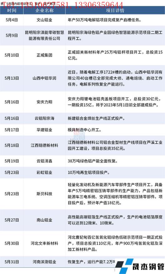 免責聲明:本網(wǎng)站(山東聊城晟杰無縫鋼管廠m.cuirutang.cn)刊載的“5月國內(nèi)14個鋁項目開工、投產(chǎn)或復產(chǎn)”等均源于網(wǎng)絡,版權歸原作者所有,且僅代表原作者觀點,本文所載信息僅供參考。轉(zhuǎn)載僅為學習與交流之目的,如無意中侵犯您的合法權益,請及時聯(lián)系刪除。本網(wǎng)站刊登此篇文章并不意味著本站贊同其觀點或證實其內(nèi)容的真實性,我們不對其科學性、嚴肅性等作任何形式的保證。如果侵犯了您的版權,請盡快聯(lián)系我們予以撤銷,謝謝合作!
