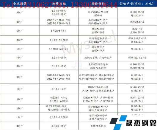 截至6月3日,省內(nèi)螺紋鋼產(chǎn)量51.16萬噸,同比2020年下降26.62萬噸,降幅達到34.22%。省內(nèi)螺紋鋼開工率為51.3%,同比2020年下降26.69個百分點。可以發(fā)現(xiàn)受宏觀環(huán)境、新冠疫情影響,省內(nèi)無縫厚壁鋼管廠家5月份整體噸鋼利潤不佳,特別是今年又有粗鋼壓減任務(wù),因此無縫厚壁鋼管廠家也有在利潤較差時期減產(chǎn)的動機,因此5月檢修較多,產(chǎn)量較去年同期明顯下滑。