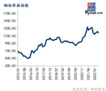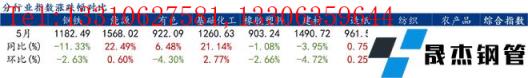 5月份鋼鐵價(jià)格指數(shù)為1182.49,環(huán)比下跌2.63%,同比下跌11.33%。