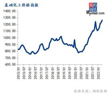 5月份基礎(chǔ)化工價(jià)格指數(shù)為1260.63,環(huán)比上漲2.77%,同比上漲21.14%。