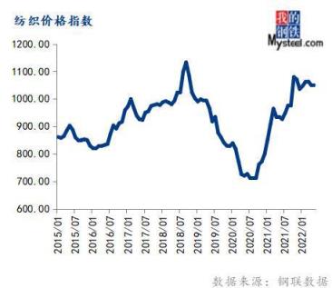 5月份紡織價(jià)格指數(shù)為1047.23,環(huán)比下跌0.23%,同比上漲12.03%。