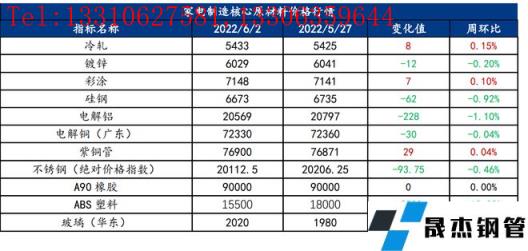 免責聲明:本網站(山東聊城晟杰無縫鋼管廠m.cuirutang.cn)刊載的“家電原材料周報(5.30-6.2)”等均源于網絡,版權歸原作者所有,且僅代表原作者觀點,本文所載信息僅供參考。轉載僅為學習與交流之目的,如無意中侵犯您的合法權益,請及時聯系刪除。本網站刊登此篇文章并不意味著本站贊同其觀點或證實其內容的真實性,我們不對其科學性、嚴肅性等作任何形式的保證。如果侵犯了您的版權,請盡快聯系我們予以撤銷,謝謝合作!