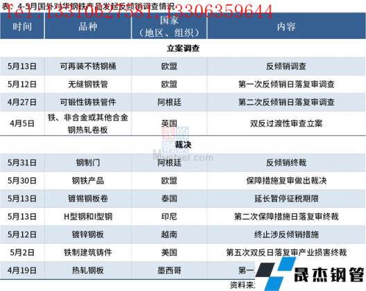 免責(zé)聲明:本網(wǎng)站(山東聊城晟杰無縫鋼管廠m.cuirutang.cn)刊載的“4-5月國外對華鋼鐵產(chǎn)品發(fā)起反傾銷調(diào)查情況”等均源于網(wǎng)絡(luò),版權(quán)歸原作者所有,且僅代表原作者觀點(diǎn),本文所載信息僅供參考。轉(zhuǎn)載僅為學(xué)習(xí)與交流之目的,如無意中侵犯您的合法權(quán)益,請及時(shí)聯(lián)系刪除。本網(wǎng)站刊登此篇文章并不意味著本站贊同其觀點(diǎn)或證實(shí)其內(nèi)容的真實(shí)性,我們不對其科學(xué)性、嚴(yán)肅性等作任何形式的保證。如果侵犯了您的版權(quán),請盡快聯(lián)系我們予以撤銷,謝謝合作!