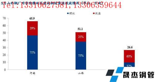 在統(tǒng)計(jì)的11家山西無(wú)縫厚壁鋼管廠家中,5月份向晉陜?cè)サ貐^(qū)建筑厚壁無(wú)縫鋼管資源投放總量為143.6萬(wàn)噸,其中螺紋94.6萬(wàn)噸,占比為66%,線(xiàn)盤(pán)49萬(wàn)噸,占比為34%。分區(qū)域來(lái)看,對(duì)山西地區(qū)投放51.1萬(wàn)噸,占比為36%;對(duì)河南地區(qū)投放65.9萬(wàn)噸,占比為46%;對(duì)陜西地區(qū)投放26.6萬(wàn)噸,占比為19%。據(jù)數(shù)據(jù)顯示,5月份山西無(wú)縫厚壁鋼管廠家向晉陜?cè)サ貐^(qū)投放建筑厚壁無(wú)縫鋼管資源總量較4月份增加24.27萬(wàn)噸。分區(qū)域來(lái)看,5月對(duì)山西地區(qū)的投放增量最大,主要是山西區(qū)域價(jià)格持續(xù)高于周邊市場(chǎng),山西省內(nèi)資源多在省內(nèi)消化為主。