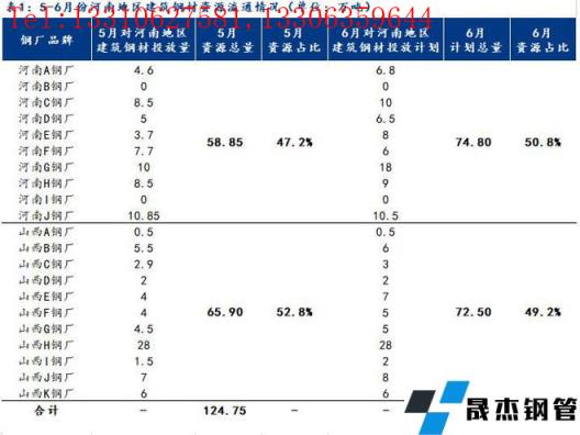 從計(jì)劃投放量來(lái)看,在統(tǒng)計(jì)的11家山西無(wú)縫厚壁鋼管廠家中,6月份計(jì)劃向晉陜?cè)ナ袌?chǎng)投放建筑厚壁無(wú)縫鋼管資源總計(jì)168萬(wàn)噸,較5月份投放量環(huán)比或增加11.3萬(wàn)噸。其中,6月份計(jì)劃向山西地區(qū)投放62萬(wàn)噸,河南地區(qū)投放72.5萬(wàn)噸,陜西地區(qū)投放33.5萬(wàn)噸。