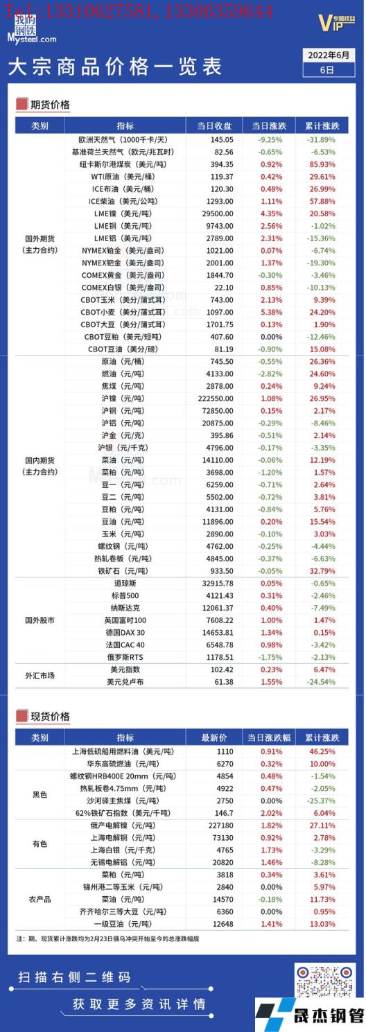 免責聲明:本網站(山東聊城晟杰無縫鋼管廠m.cuirutang.cn)刊載的“俄烏局勢丨大宗商品價格一覽表(6月6日)”等均源于網絡,版權歸原作者所有,且僅代表原作者觀點,本文所載信息僅供參考。轉載僅為學習與交流之目的,如無意中侵犯您的合法權益,請及時聯系刪除。本網站刊登此篇文章并不意味著本站贊同其觀點或證實其內容的真實性,我們不對其科學性、嚴肅性等作任何形式的保證。如果侵犯了您的版權,請盡快聯系我們予以撤銷,謝謝合作!