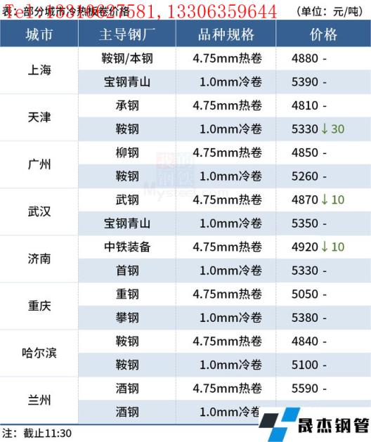 ◎天津:7日早盤冷軋市場價格下調30元/噸,1.0天鐵5340元/噸;首鋼5330元/噸,唐鋼5300元/噸,成交一般。(單位:元/噸)