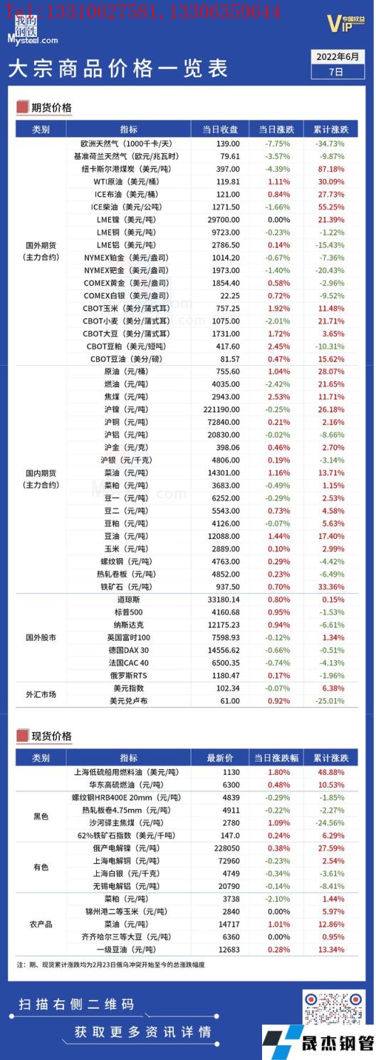 免責聲明:本網站(山東聊城晟杰無縫鋼管廠m.cuirutang.cn)刊載的“俄烏局勢丨大宗商品價格一覽表(6月7日)”等均源于網絡,版權歸原作者所有,且僅代表原作者觀點,本文所載信息僅供參考。轉載僅為學習與交流之目的,如無意中侵犯您的合法權益,請及時聯系刪除。本網站刊登此篇文章并不意味著本站贊同其觀點或證實其內容的真實性,我們不對其科學性、嚴肅性等作任何形式的保證。如果侵犯了您的版權,請盡快聯系我們予以撤銷,謝謝合作!