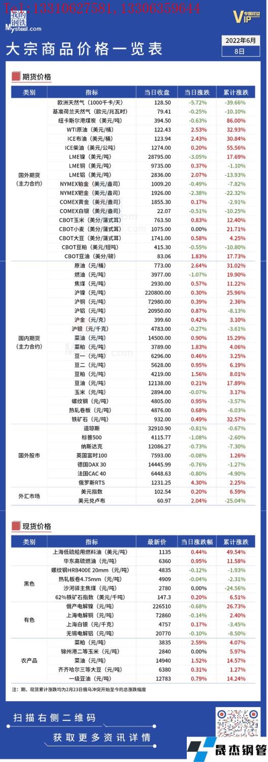 免責(zé)聲明:本網(wǎng)站(山東聊城晟杰無縫鋼管廠m.cuirutang.cn)刊載的“俄烏局勢丨大宗商品價格一覽表(6月8日)”等均源于網(wǎng)絡(luò),版權(quán)歸原作者所有,且僅代表原作者觀點,本文所載信息僅供參考。轉(zhuǎn)載僅為學(xué)習(xí)與交流之目的,如無意中侵犯您的合法權(quán)益,請及時聯(lián)系刪除。本網(wǎng)站刊登此篇文章并不意味著本站贊同其觀點或證實其內(nèi)容的真實性,我們不對其科學(xué)性、嚴肅性等作任何形式的保證。如果侵犯了您的版權(quán),請盡快聯(lián)系我們予以撤銷,謝謝合作!