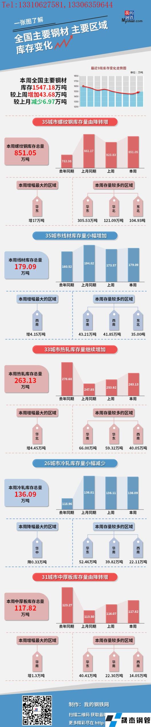 本周,全國(guó)主要厚壁無(wú)縫鋼管社會(huì)庫(kù)存1547.18萬(wàn)噸,較上周增加43.68萬(wàn)噸,較上月減少6.97萬(wàn)噸;螺紋鋼庫(kù)存總量851.05萬(wàn)噸。