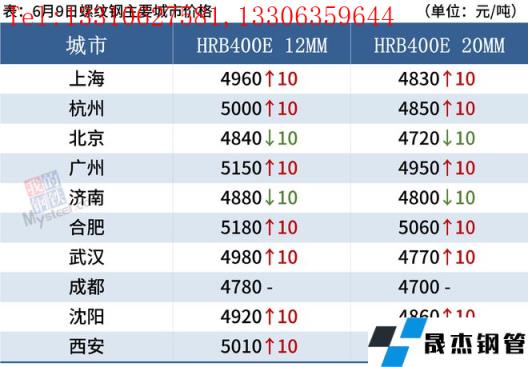 建筑厚壁無縫鋼管:6月9日,全國31個主要城市20mm三級抗震螺紋鋼均價4838元/噸,較上個交易日漲3元/噸。產業數據方面,本周螺紋鋼產量小幅增加,庫存方面,雖然廠庫下降,但社庫出現回升,同時在雨季影響下,需求端整體低迷。短期來看,目前市場需求恢復狀況不及預期,南方汛期疊加高考日影響,下游需求整體低迷,且投機性需求較差。因此短期在弱基本面的壓力下,預計10日國內建筑厚壁無縫鋼管價格或將繼續窄幅震蕩為主。