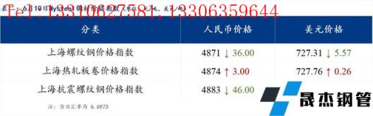 6月10日普鋼絕對價格指數變化:綜合指數5058.29,下跌12.4;螺紋鋼指數4821.36,下跌17.99;線材指數5213.65,下跌16.88;熱軋板卷指數4877.7,下跌9.63;冷軋板卷指數5337.5,下跌9.3;中厚板指數5076.26,下跌7.47。