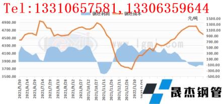 圖5 唐山長流程無縫無縫鋼管廠家鋼坯(累計)成本—利潤示意圖