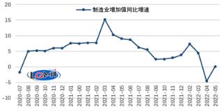 5月份,規(guī)模以上工業(yè)增加值同比實際增長0.7%,增速由負轉正,但顯著低于3月份增速。其中,5月份制造業(yè)增加值同比增長0.1%(詳見圖4),主要用鋼產品中,工業(yè)機器人、金屬切削機床產量仍為負增長,汽車產量降幅明顯收窄,發(fā)電設備產量轉為正增長。